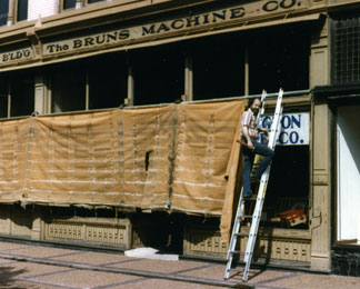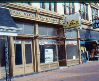 The Central Building was constructed in 1906 by William B. Rechtern to house the Bruns Machine Co., a hardware and farm implement firm, and his own Wm. B. Rechtern Clothing Co. Professional offices and local organizations utilized the second floor space.