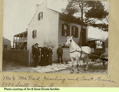 This property, built originally in 1840, represented one of the most seriously deteriorated and endangered properties in the area prior to the commitment of Paul & V'Anne Mydler. In 1987, as they neared completion of this restoration and preservation of this Greek Revival structure, the St. Charles Historic District National Register boundary was increased to include 1000 South Main Street. (Sharlotte Worthington)
