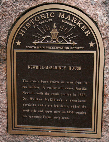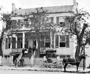 Newbill-McElhiney House, ca. 1880s. Appears to be Dr. William McElhiney and his wife Henrietta, daughters Florida and Georgia, with Georgia's son Rogers Orrick, and Florida's daughters Josie, Nettie & Florida Gallagher. They are shown living together in this house, in the 1880 census.